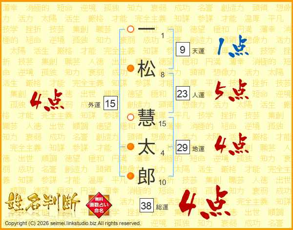 一松慧太郎さんの総運は38画の4点!