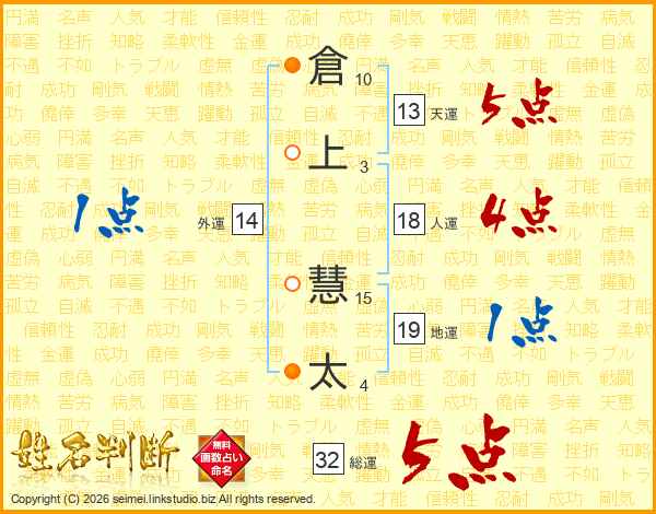 倉上慧太さんの総運は32画の5点!