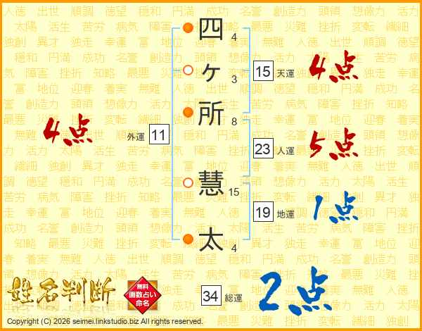 四(4画)ヶ(3画)所(8画) 慧(15画)太(4画)
