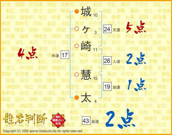 城ヶ崎慧太さんの人運は26画の2点!