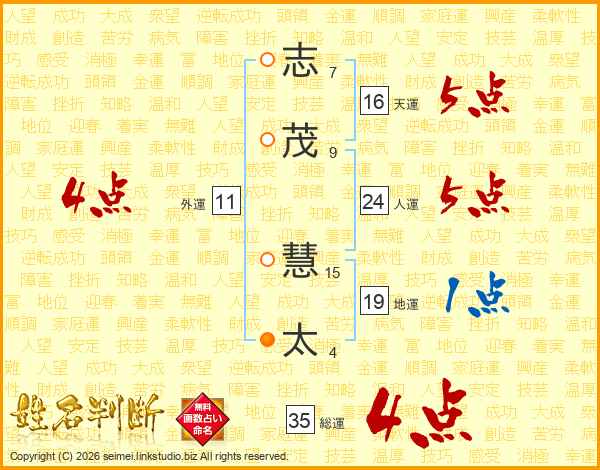 志茂慧太さんの総運は35画の4点!