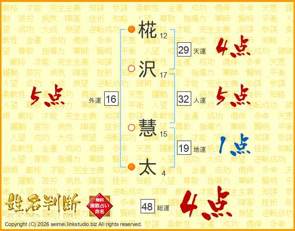 椛沢慧太さんの総運は48画の4点!