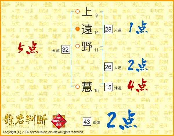 上遠野慧さんの総運は43画の2点!