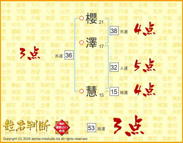 櫻(21画)澤(17画) 慧(15画)