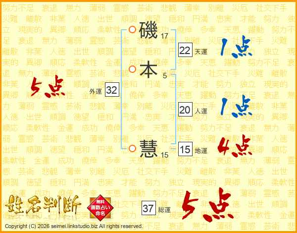 磯(17画)本(5画) 慧(15画)