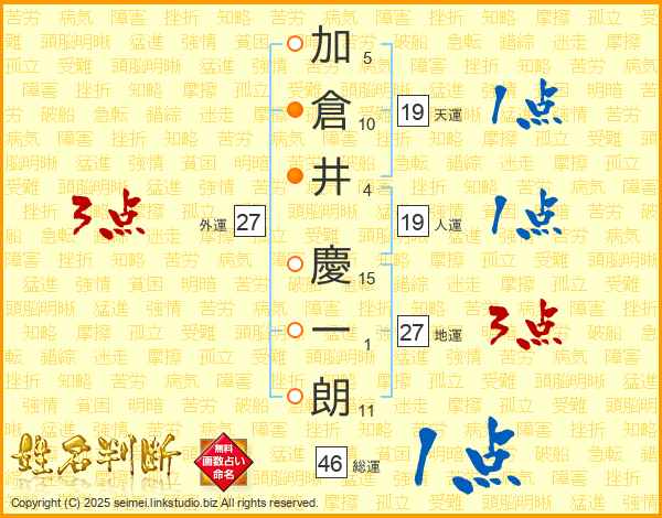 加倉井慶一朗さんの総運は46画の1点!