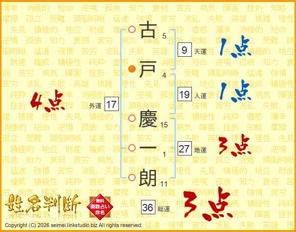 古戸慶一朗さんの総運は36画の3点!