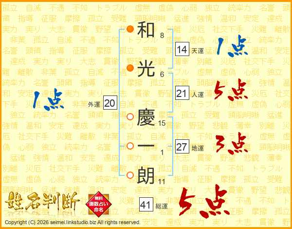 和(8画)光(6画) 慶(15画)一(1画)朗(11画)