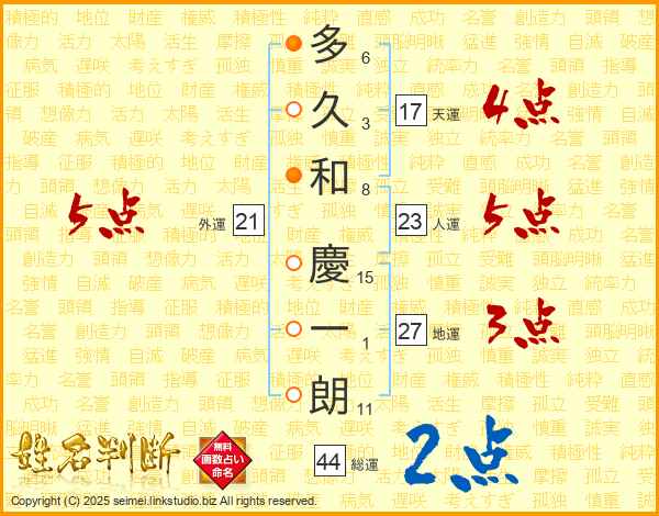 多久和慶一朗さんの人運は23画の5点!