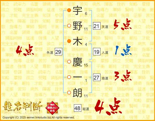 宇野木慶一朗さんの天運は21画の5点!