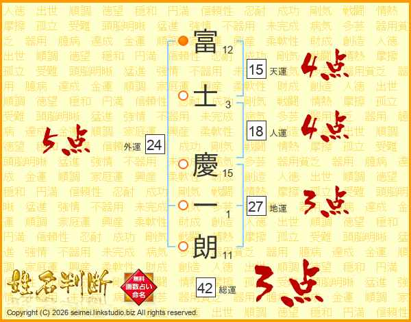 富(12画)士(3画) 慶(15画)一(1画)朗(11画)