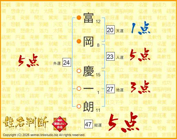 富岡慶一朗さんの人運は23画の5点!