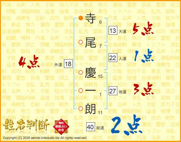 寺尾慶一朗さんの総運は40画の2点!