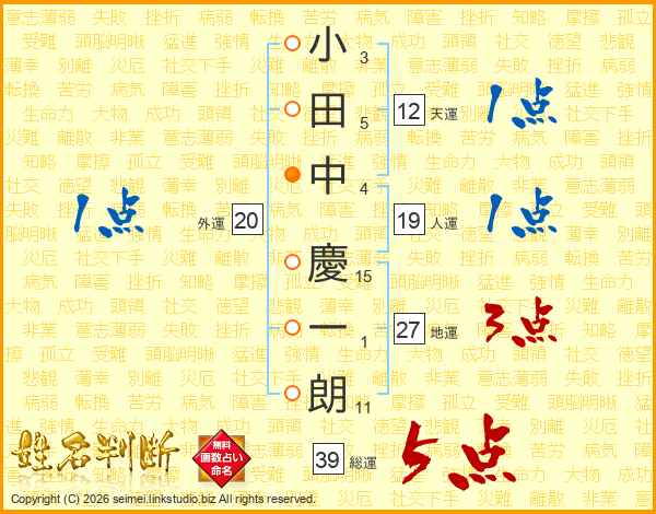 小田中慶一朗さんの総運は39画の5点!