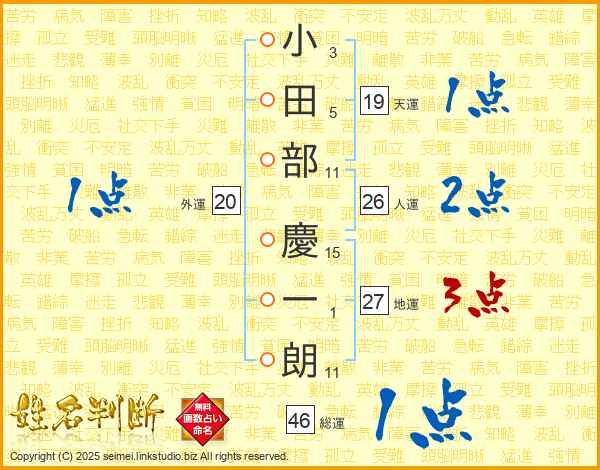 小田部慶一朗さんの人運は26画の2点!