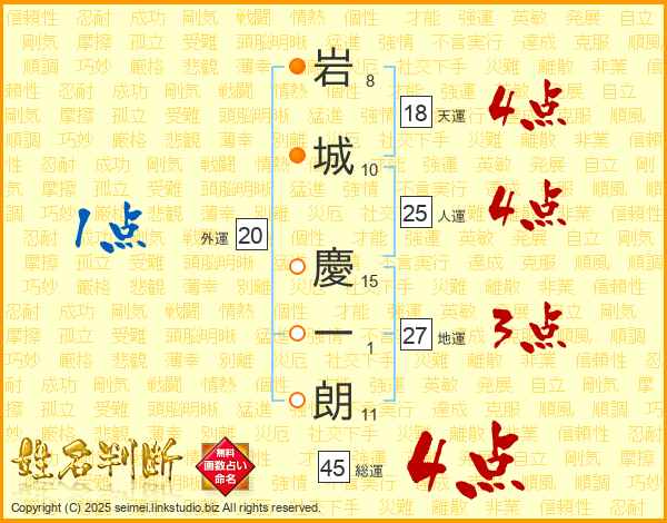 岩城慶一朗さんの人運は25画の4点!