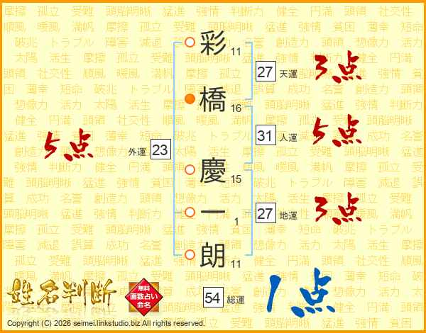 彩橋慶一朗さんの人運は31画の5点!