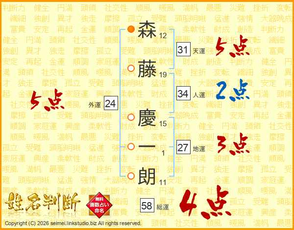 森藤慶一朗さんの総運は58画の4点!