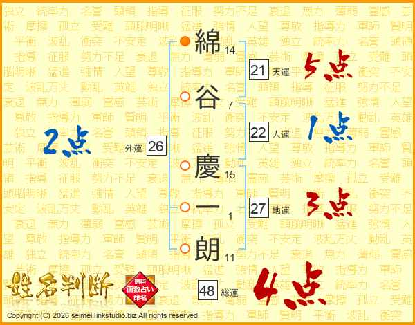 綿谷慶一朗さんの総運は48画の4点!