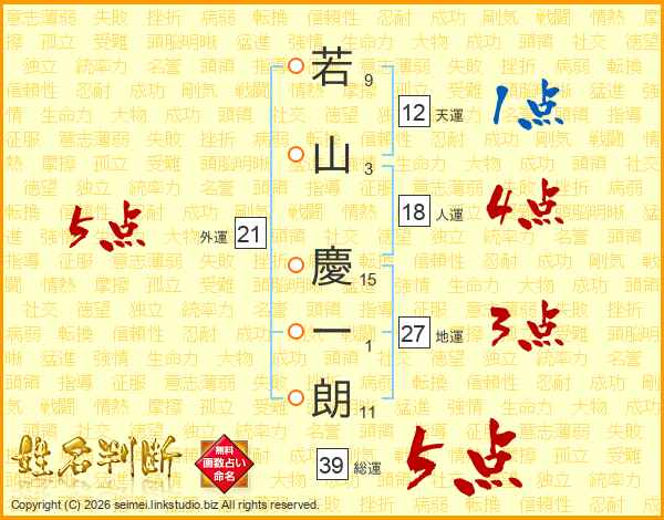 若山慶一朗さんの総運は39画の5点!