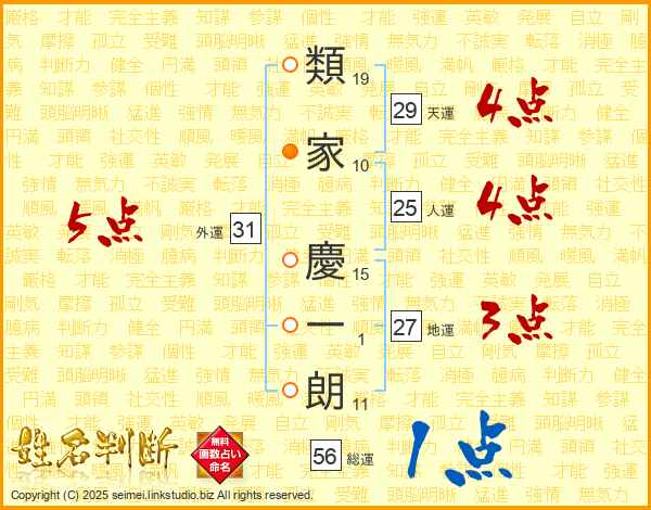類家慶一朗さんの外運は31画の5点!