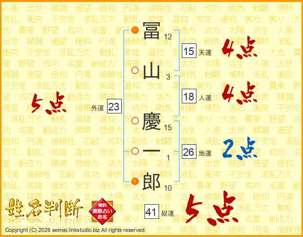 冨(12画)山(3画) 慶(15画)一(1画)郎(10画)