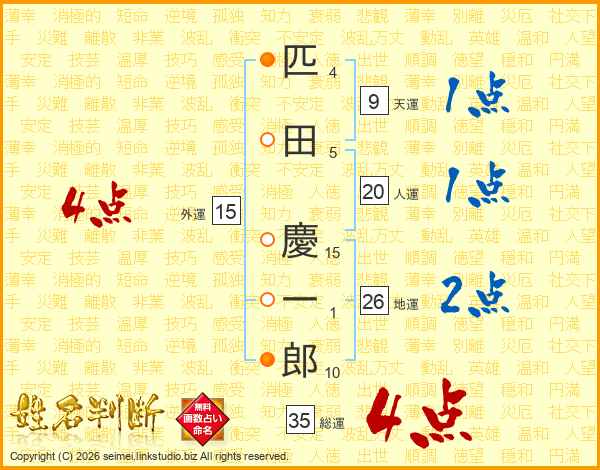 匹田慶一郎さんの地運は26画の2点!