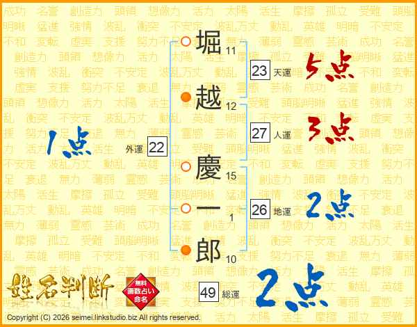 堀越慶一郎さんの地運は26画の2点!