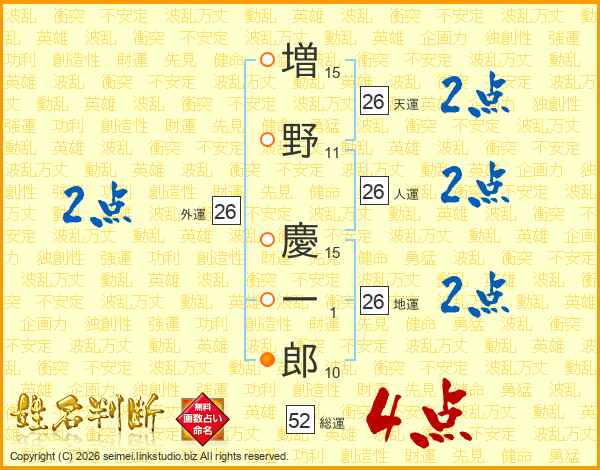 増野慶一郎さんの人運は26画の2点!