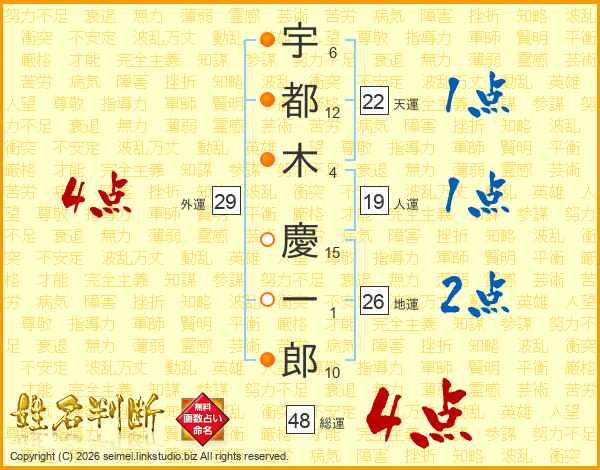 宇都木慶一郎さんの地運は26画の2点!