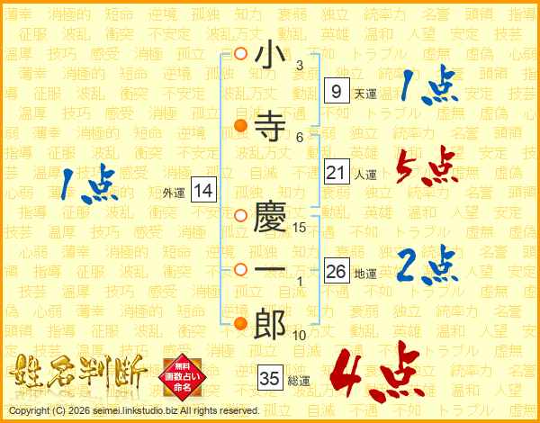 小寺慶一郎さんの総運は35画の4点!