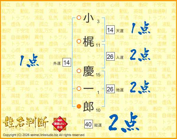 小梶慶一郎さんの総運は40画の2点!
