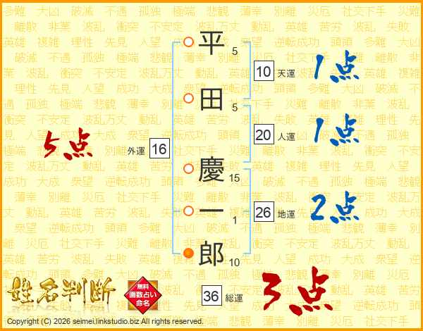 平田慶一郎さんの総運は36画の3点!