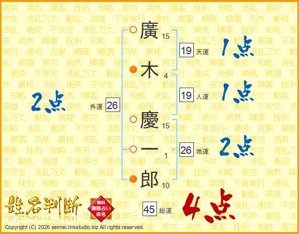 廣木慶一郎さんの総運は45画の4点!
