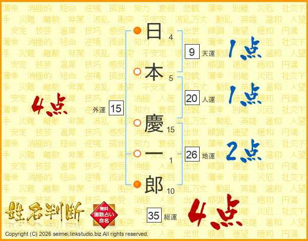 日本慶一郎さんの地運は26画の2点!