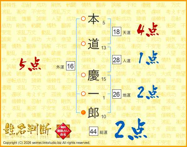 本道慶一郎さんの地運は26画の2点!