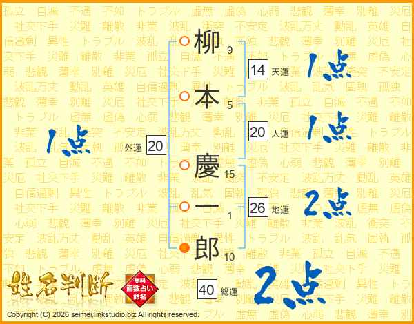 柳本慶一郎さんの総運は40画の2点!