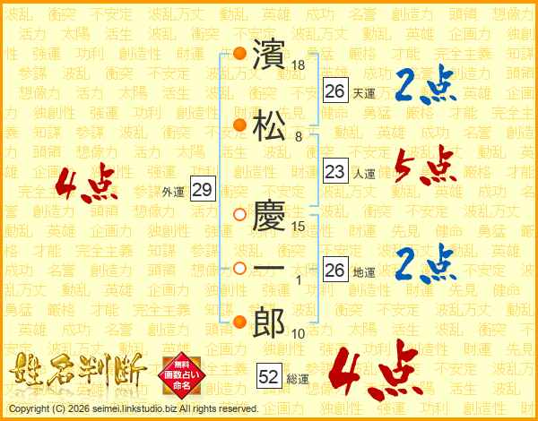 濱松慶一郎さんの総運は52画の4点!