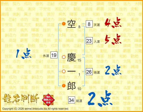 空慶一郎さんの地運は26画の2点!