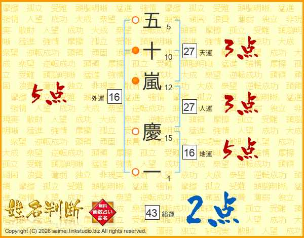 五十嵐慶一さんの総運は43画の2点!