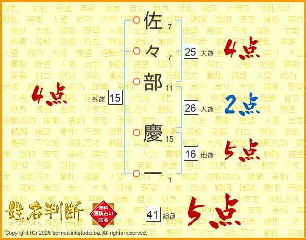 佐々部慶一さんの総運は41画の5点!