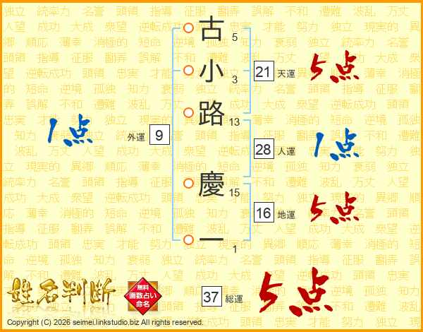 古小路慶一さんの総運は37画の5点!