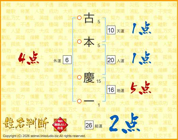 古本慶一さんの総運は26画の2点!