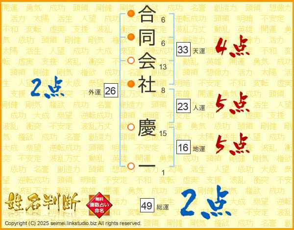 合同会社慶一さんの天運は33画の4点!