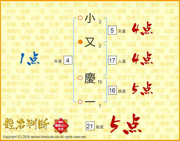 小又慶一さんの総運は21画の5点!