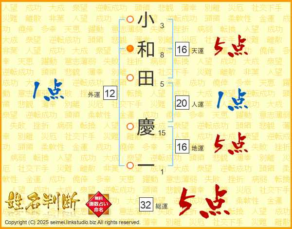 小和田慶一さんの総運は32画の5点!
