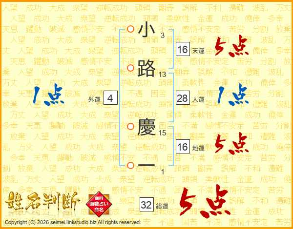 小路慶一さんの総運は32画の5点!
