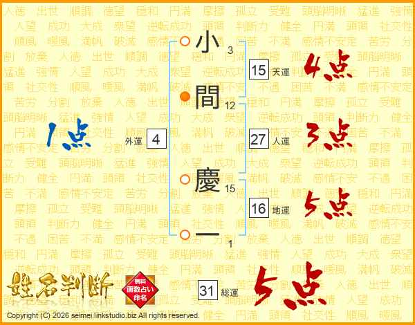 小間慶一さんの総運は31画の5点!