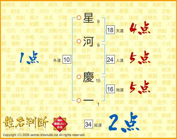 星河慶一さんの総運は34画の2点!