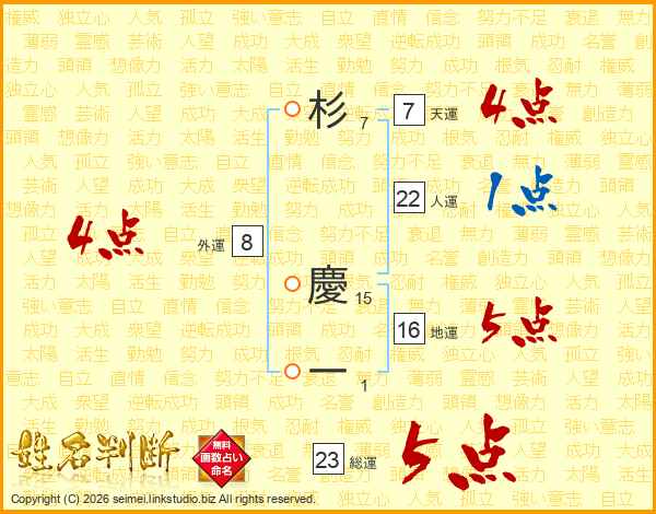 杉慶一さんの総運は23画の5点!